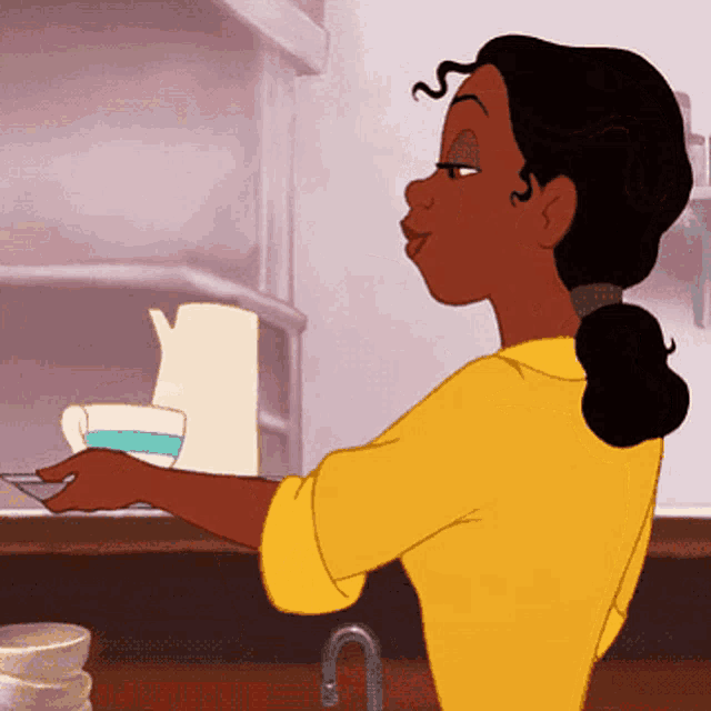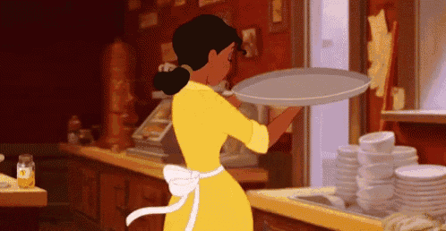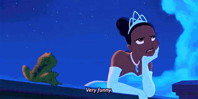 • Встреча Тианы и принца Навина: Тиана работает официанткой и усердно копит деньги на свой ресторан. Принц Навин, который был превращён в лягушку коварным колдуном доктором Фастеусом, случайно попадает к Тиане.